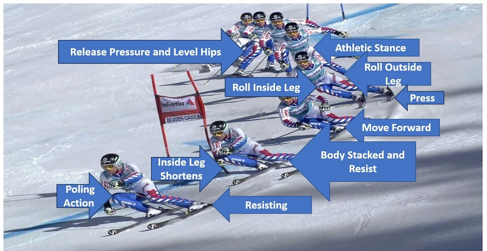 Learning the physical movements used by elite skiers to carve turns can enhance both your skiing, race results and safety.